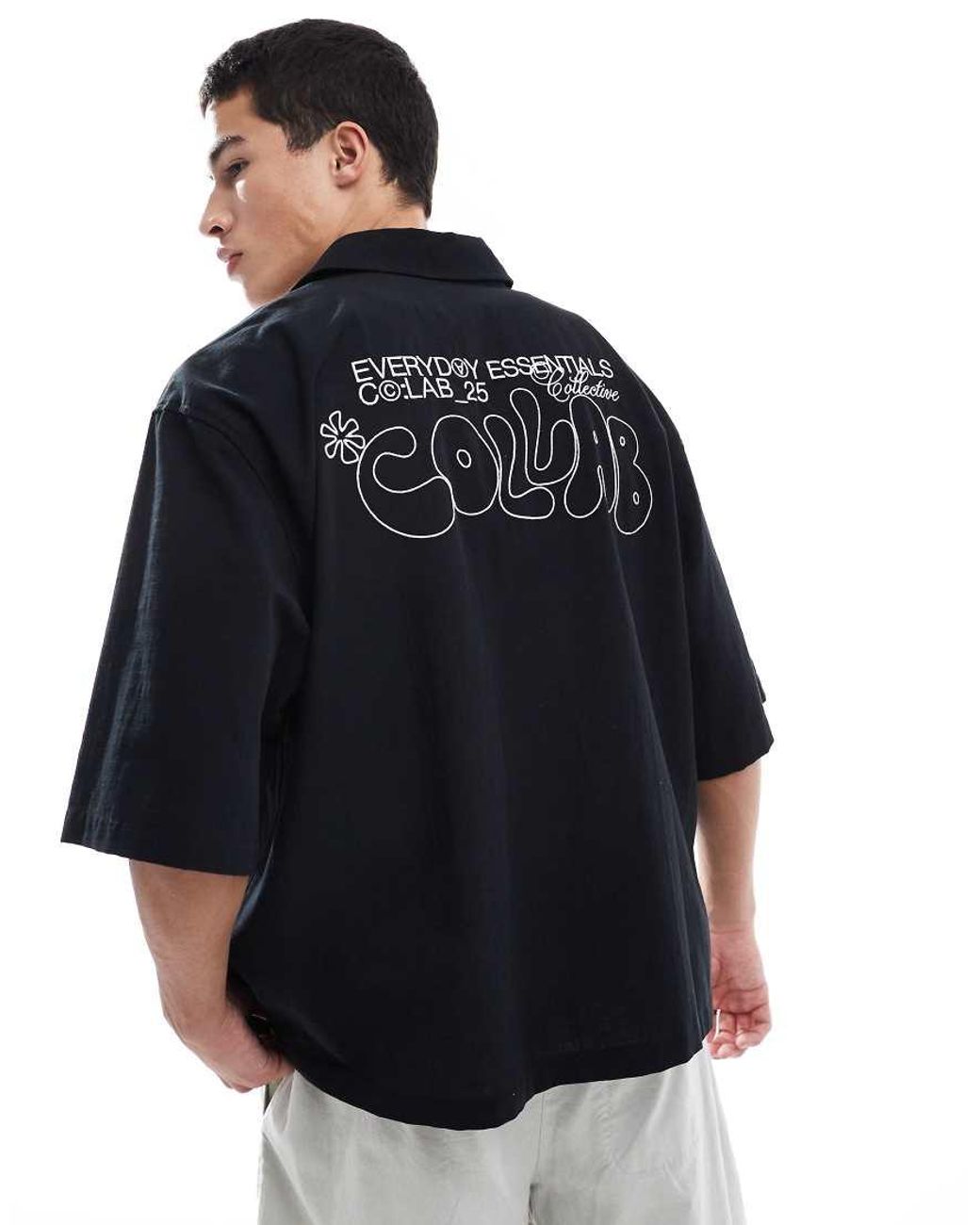 Overhemd van ASOS DESIGN Brede kraag Knoopbies Korte mouwen Met geborduurde tekst op rug Rechte pasvorm Oversized pasvorm Kleur: blauw