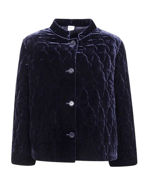 Marineblauw gewatteerd effect knoopsluiting hoge hals lange mouwen rechte zoom Size: 40. Gender: Female. Material:Viscose. Kleur: blauw