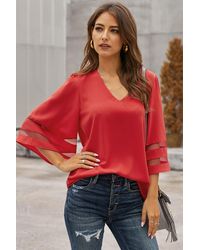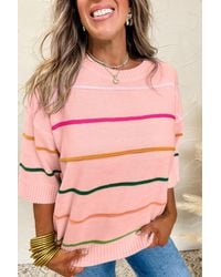 Azura Exchange Oranje Gestreepte Kleurblokkade Hollowed Haak 3/4 Mouw Trui in het rood voor dames