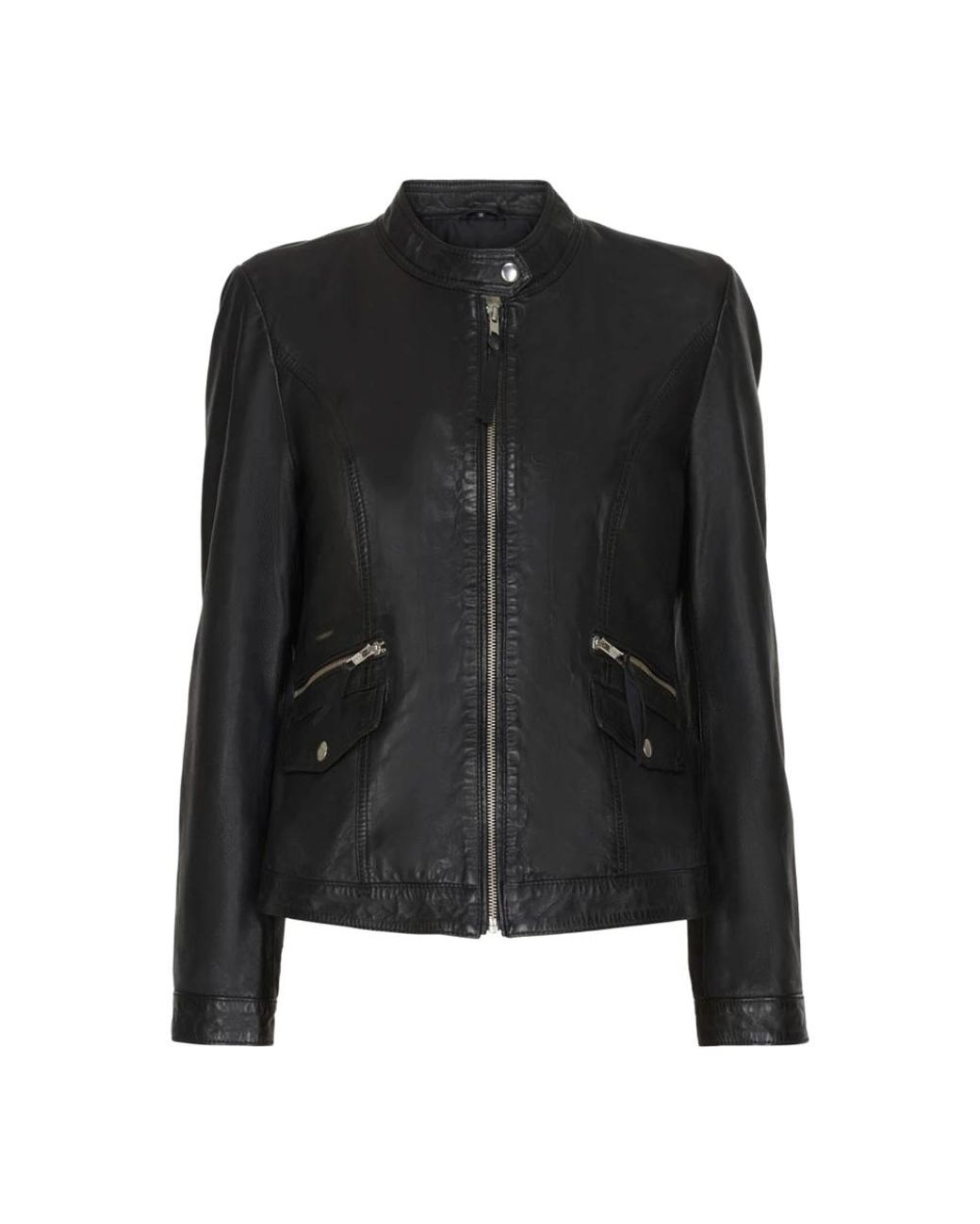 - Jassen ,Zwart ,Leer Zwarte Bikerjas Met Rits