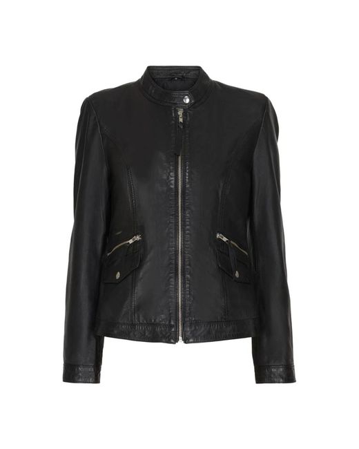 Jassen ,Zwart ,Leer Zwarte Bikerjas Met Rits voor dames