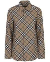 Burberry Wool Blend Shirt Met Chequemotief in het bruin voor dames