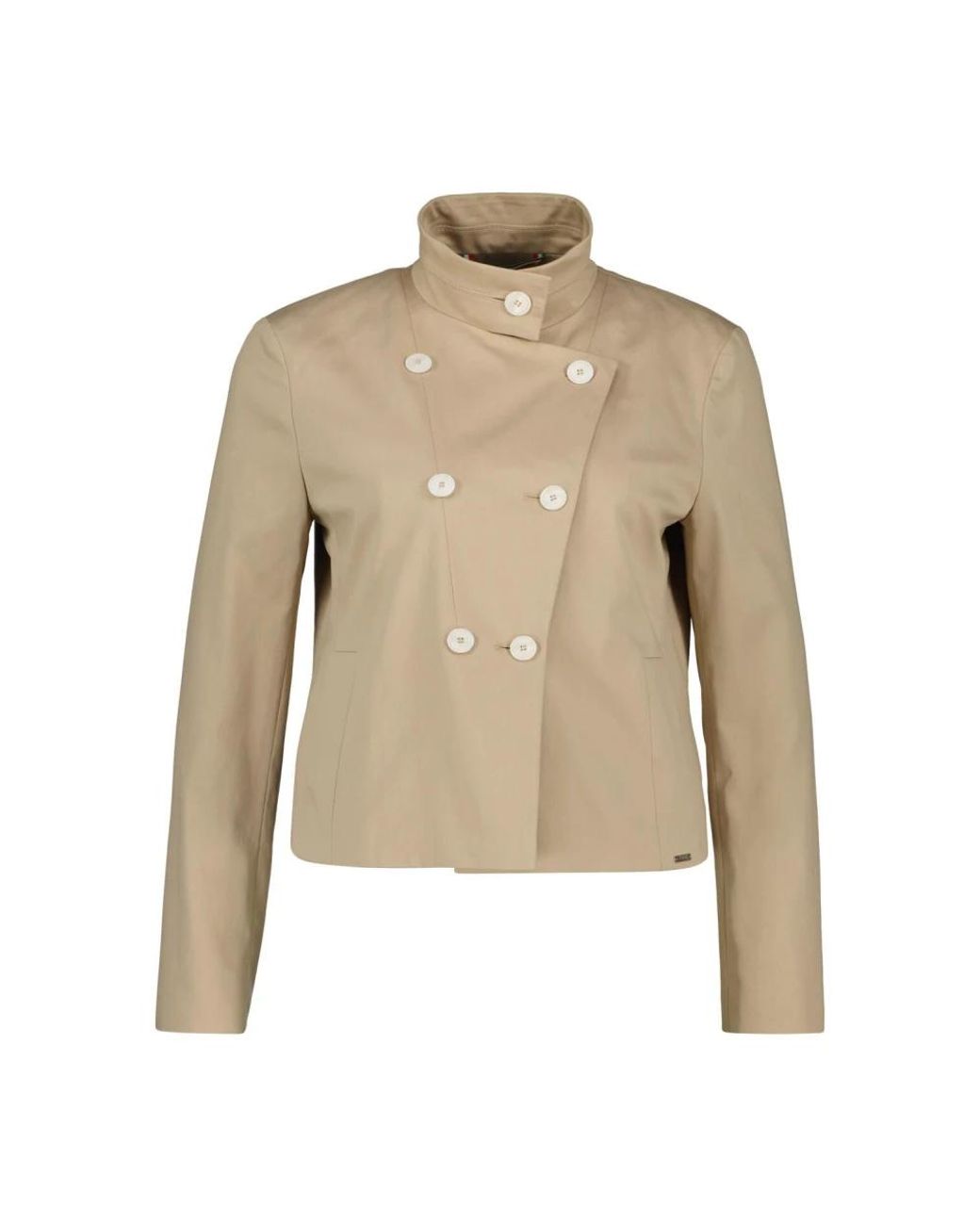De Cinque Ciloka Jacket geeft een update aan de klassieke tailoring met een opstaande kraag en asymmetrische double-breasted sluiting. De verkorte, lichtelijk boxy vorm creëert een vrouwelijk silhouet dat goed combineert met high-waist broeken of rokken. Belangrijkste kenmerken: Beige | Katoen | Double-breasted knoopsluiting | Steekzakken aan de zijkant | Opstaande kraag | Asymmetrische double-breasted knoopsluiting | Kort, lichtelijk boxy silhouet | Afmetingen & pasvorm: Lengte: 52 cm | Regular fit | Samenstelling & onderhoud: 64% katoen, 33% polyester, 3% elastaan | Niet wassen. Niet bleken. Strijken op lage temperatuur. Professionele stomerij (perchloorethyleen). Niet in de droogtrommel. Kleur: naturel