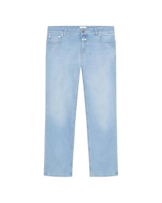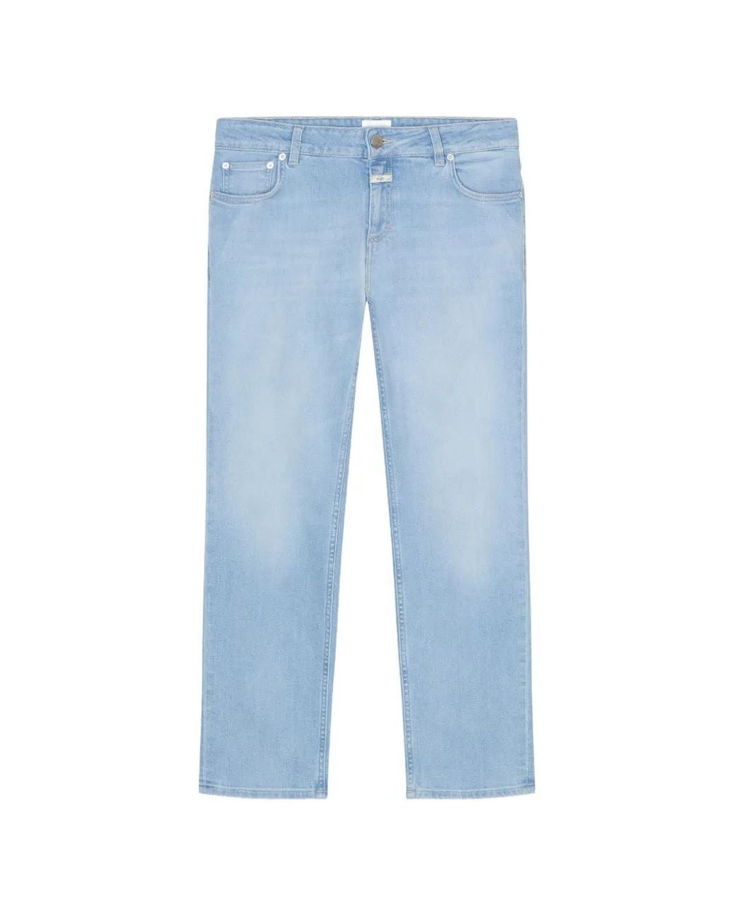 Lichtblauw vijf zakken riemlussen discrete stiksels logopatch Size: 26/32. Gender: Female. Material:Stof. Kleur: blauw
