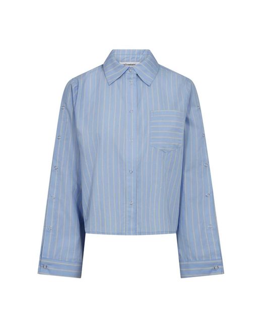 Haute'Amitié, ,Overhemden ,Blauw ,Katoen Blauw Gestreepte Twist Boog Shirt - Blauw