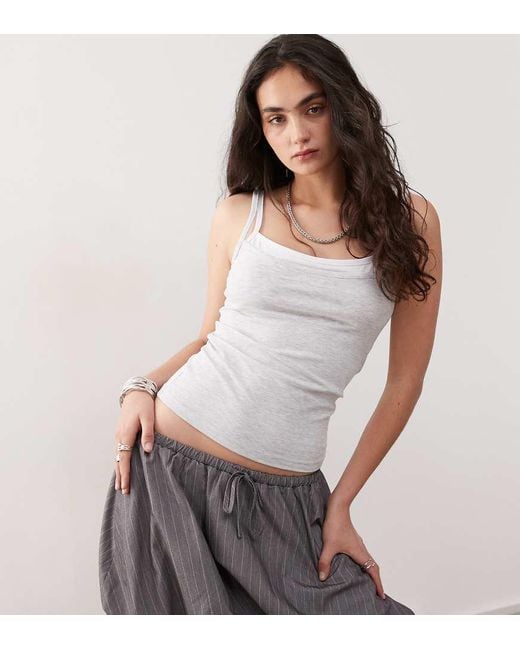 Top van COLLUSION Exclusief bij Asos Dubbelgelaagd design Vierkante hals Vaste bandjes Regular fit Kleur: wit