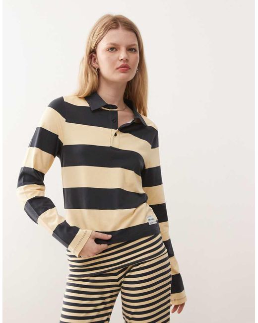 Gestreepte Gekrompen Polo Met Lange Mouwen, Deel Van Co-Ord Set in het geel voor dames