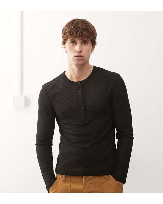 Henley T-Shirt Van Mesh Met Lange Mouwen En Knopen in het zwart voor heren