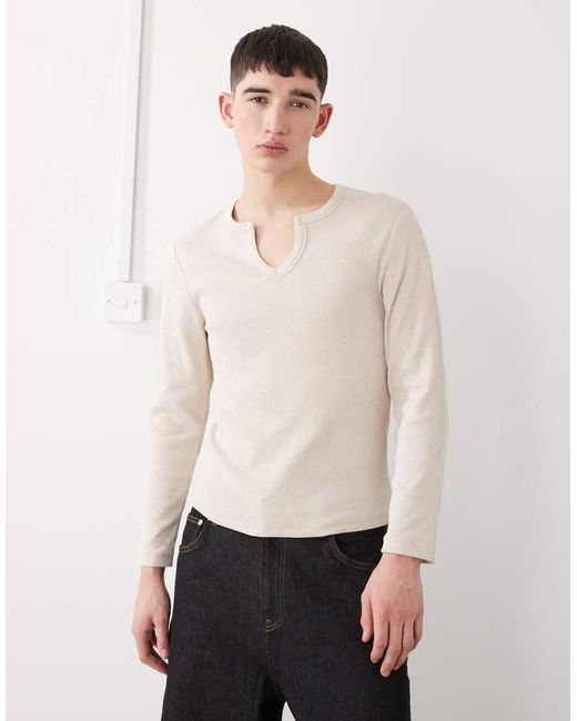 Muscle-Fit Henley T-Shirt Met Lange Mouwen En Inkeping Aan De Hals in het wit voor heren