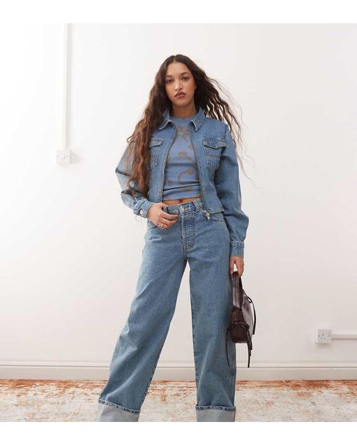 Jeans van Collusion Exclusief bij Asos Jack wordt apart verkocht Baggy model Hoge taille Riemlussen Met vijf zakken Bandje aan de achterkant Kleur: blauw