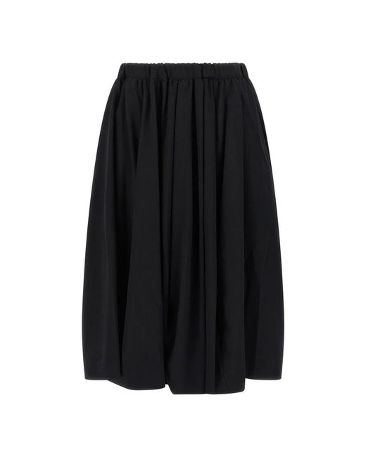 De Comme des Garçons Wollen Rok heeft een gebeeldhouwd geplisseerd silhouet met een verstelbare tailleband met trekkoord. Ontworpen voor dagelijks gebruik, combineert het opvallende plooien met praktische zakken. Belangrijkste kenmerken: Zwart | Wol | Verstelbare elastische tailleband met trekkoord | Zakken | Ongevoerd | Irregulier plooi detail | Wheel model plooien | Afmetingen & pasvorm: Losse pasvorm | Samenstelling & verzorging: 100% wol Kleur: zwart