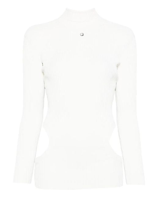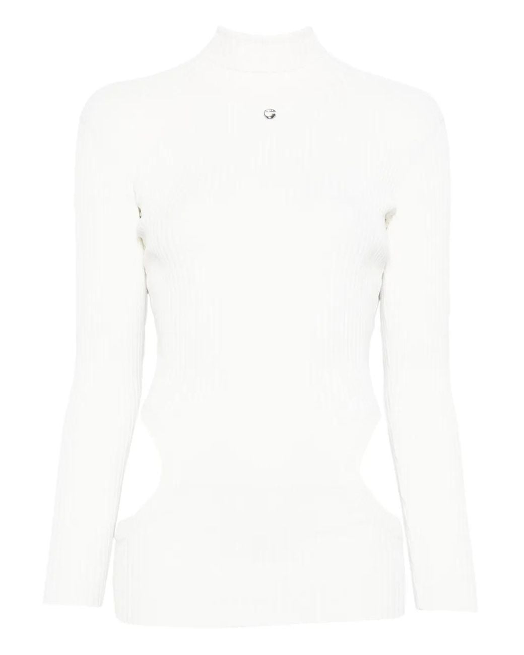 Wit ribgebreid uitgesneden detail hoge hals lange mouwen tonale hardware Size: XS. Gender: Female. Material:Viscose. Kleur: wit