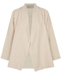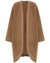 Ga naar MiintoKorte asymmetrische jas gemaakt van een stof die linnen en zuivere wol combineert, met zijden voering. De Rodeo-jas heeft lange Japanse mouwen met openingen. Kleur: zwart