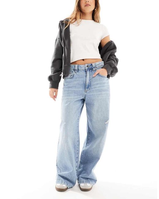Baggy Jeans Met Wijde Ronde Pijpen En Lage Taille - Blauw