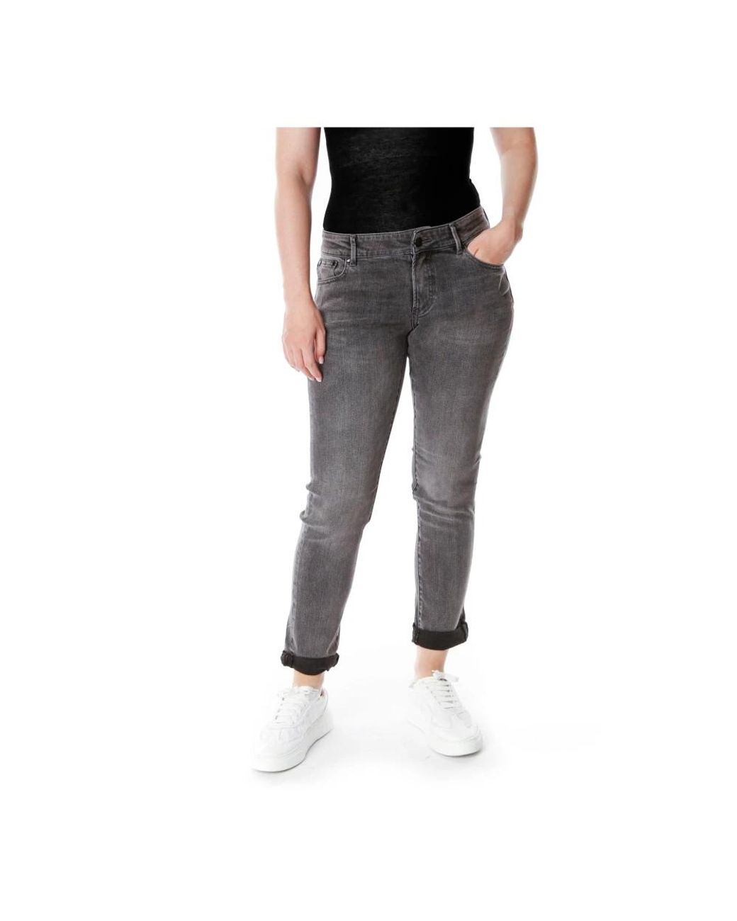 De Denham Boyfriend Jeans bieden een relaxed silhouet met een middelhoge taille in powerstretch denim voor een casual, cropped styling. Ideaal om laag op de heupen gedragen te worden met omgeslagen pijpen, ze combineren comfort met een taps toelopende afwerking. Belangrijkste kenmerken: Grijs | Denim | Powerstretch (stretch) stof | Knoop- en ritssluiting | Omgeslagen zoom | Taps toelopende pijp | Casual, lage taille styling | Afmetingen & pasvorm: Middelhoge taille | Relaxte breedte bij de dijen | Taps toelopende pijp | Ontworpen om cropped te worden gedragen | Styling: omgeslagen en gedragen op de heupen | Model is 172 cm en draagt maat 26/30