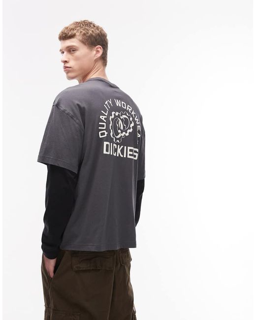 T-Shirts & Hemdjes van Dickies Met ronde hals Lange mouwen Dubbele laag Logo-tekst van Dickies op de borst Dickies-mertekst en grafische print op de rug Ruimvallende snit Kleur: grijs