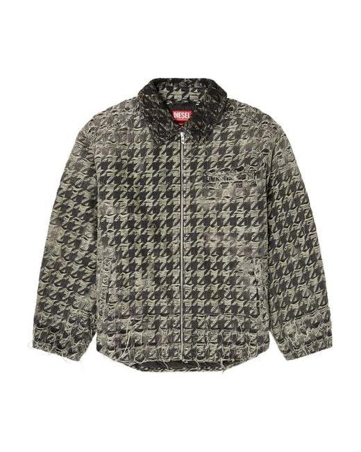 Denim Jack Met Pied-De-Poule Print En Franje in het grijs voor heren