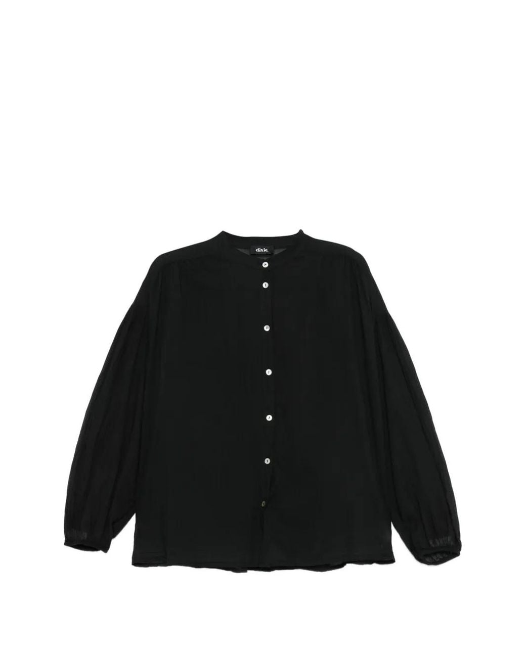Zwart ronde hals knoopsluiting aan de voorkant lange mouwen gesmockte manchetten Size: S. Gender: Female. Material:katoen. Kleur: zwart