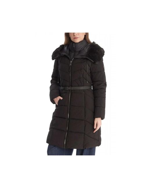 Bibbed Faux-Fur Hooded Puffer in het zwart voor dames