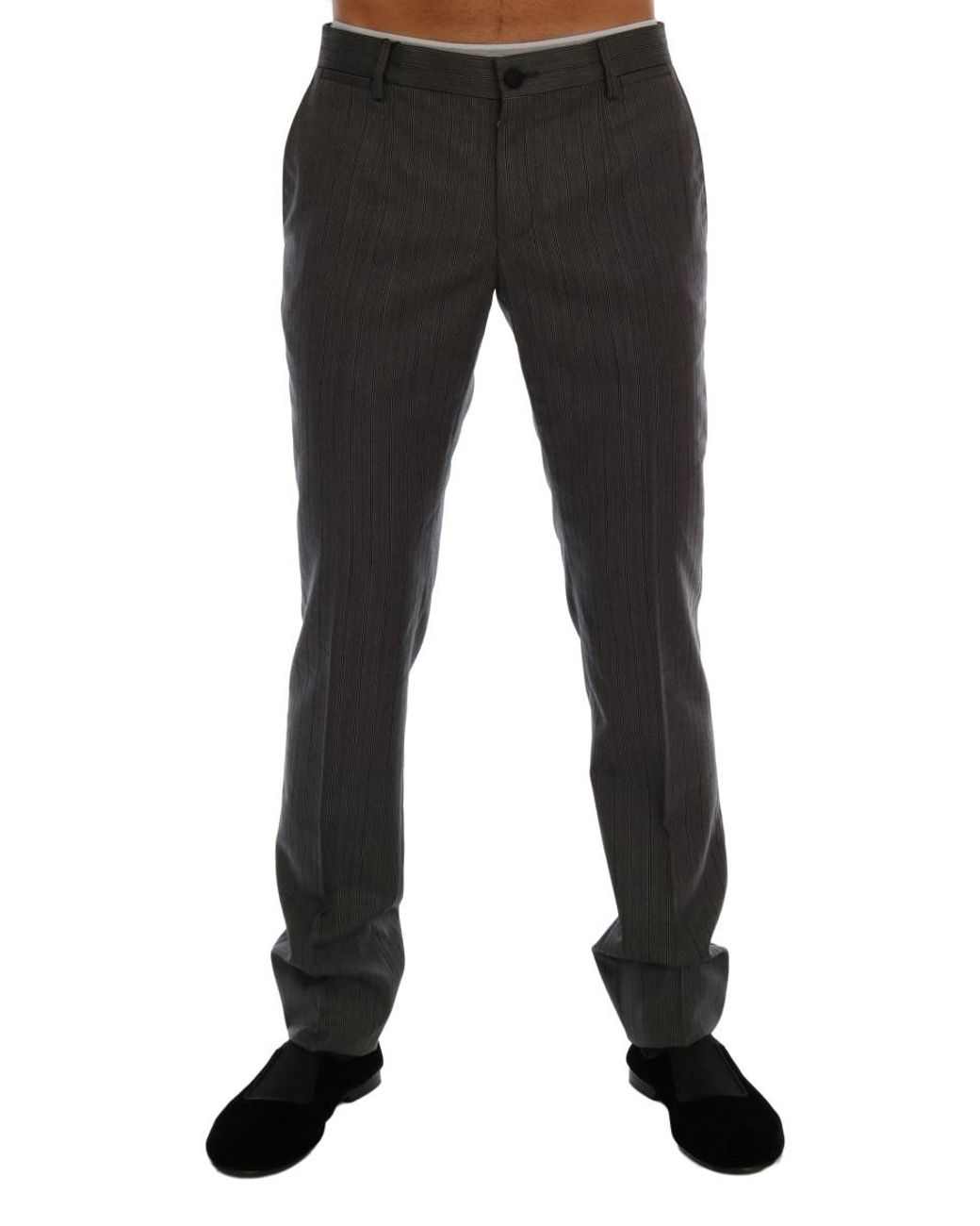Gestreepte Formele Broek Van Grijze Wol in het zwart voor heren