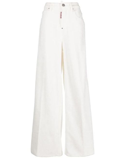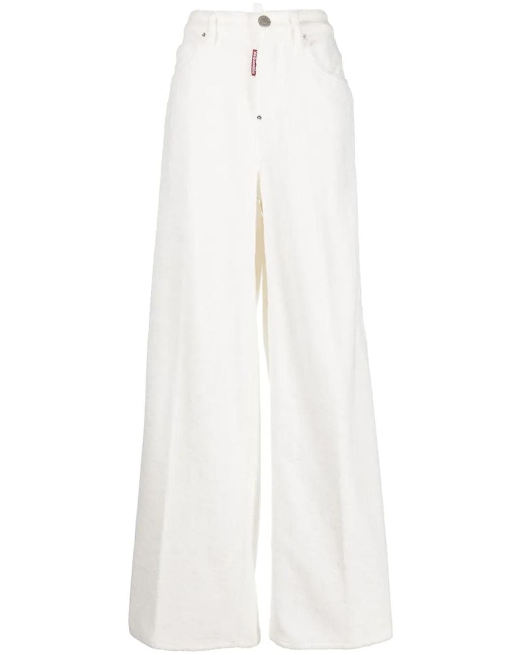 Gebroken wit, katoen, badstof effect, logopatch aan de achterkant, riemlussen, low waist, wijde pijpen, maxi-lengte en traditioneel 5-zakkenmodel. Size: 42. Gender: Female. Material:Polyester/katoen. Kleur: wit