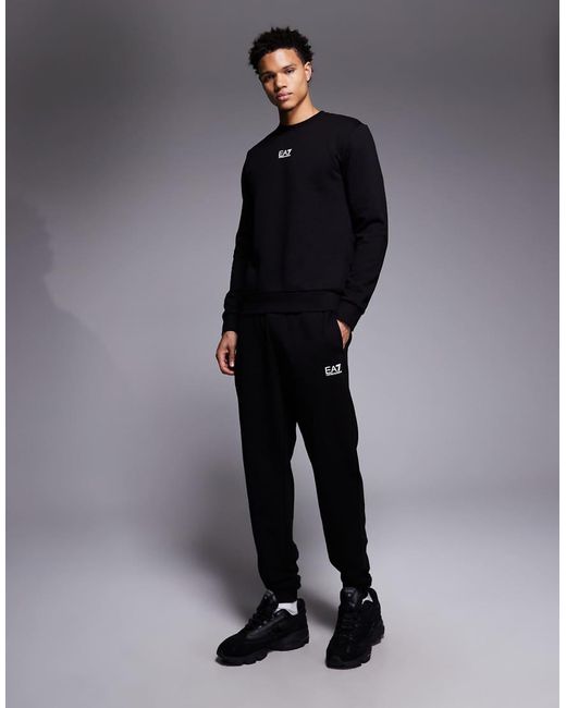 Loungekleding van EA7 Bestaat uit een sweatshirt en joggingbroek Sweatshirt met regular-fit Met ronde hals Lange mouwen Regular-fit joggingbroek Elastische tailleband Praktische zakken Aansluitende manchetten Met logo Kleur: blauw