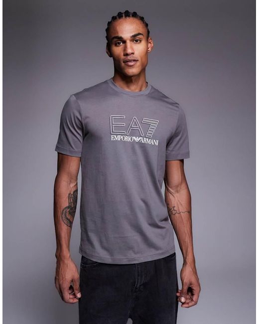 T-Shirts & Hemdjes van EA7 Met ronde hals Korte mouwen EA7-merklogo en tekstprint op de borst Regular fit Kleur: grijs