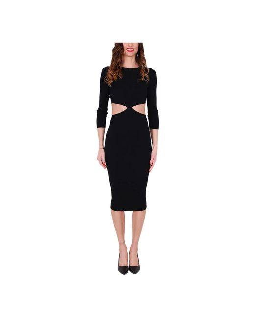 Kleedjes ,Zwart ,Zwarte Geribbelde Gebreide Midi Jurk Met Cut-Outs voor dames