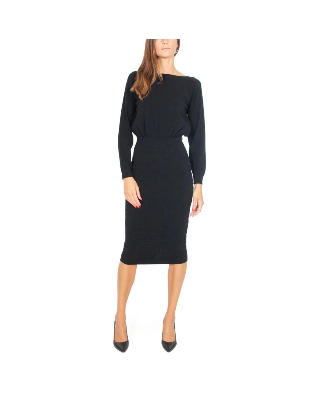 Kleedjes ,Zwart ,Leer Zwarte Gebreide Longuette Jurk Met Jacquard voor dames