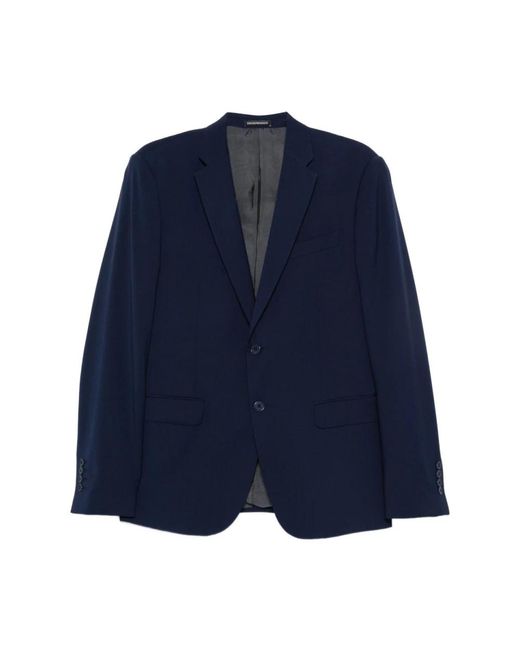 Emporio Armani Single-Breasted Suit van scheerwol. Een tijdloos tweedelig pak met een jas met twee knopen en een broek met rechte pijpen voor een verfijnde, veelzijdige look. Belangrijkste kenmerken: Blauw | Scheerwol | Sluiting met twee knopen aan de voorkant | Klepzakken aan de zijkant | Broek met ritssluiting en knoopsluiting | Riemlussen | Single-breasted silhouet | Lange mouwen | Klepzakken | Broek met rechte pijpen | Afmetingen & pasvorm: Rechte snit | Klassieke pasvorm | Samenstelling & verzorging: Buitenkant: 100% scheerwol | Voering: 65% viscose, 35% acetaat Kleur: blauw