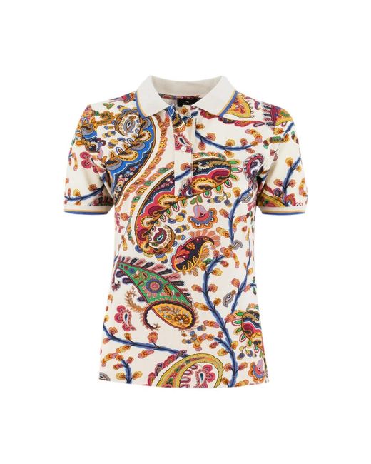 De Etro Piqué Polo Shirt met Print combineert een klassiek polo silhouet met een elegant, all-over bloemrijk Paisley-patroon voor verfijnde vrijetijdskleding. Belangrijkste kenmerken: Beige | Katoen | Klassieke kraag met knopen | Korte mouwen | All-over bloemrijk Paisley-patroon | Gestreepte kraag- en mouwafwerking | Knoopsluiting | Afmetingen & pasvorm: Aansluitend | Samenstelling & verzorging: 95% katoen | 5% elastaan Kleur: wit