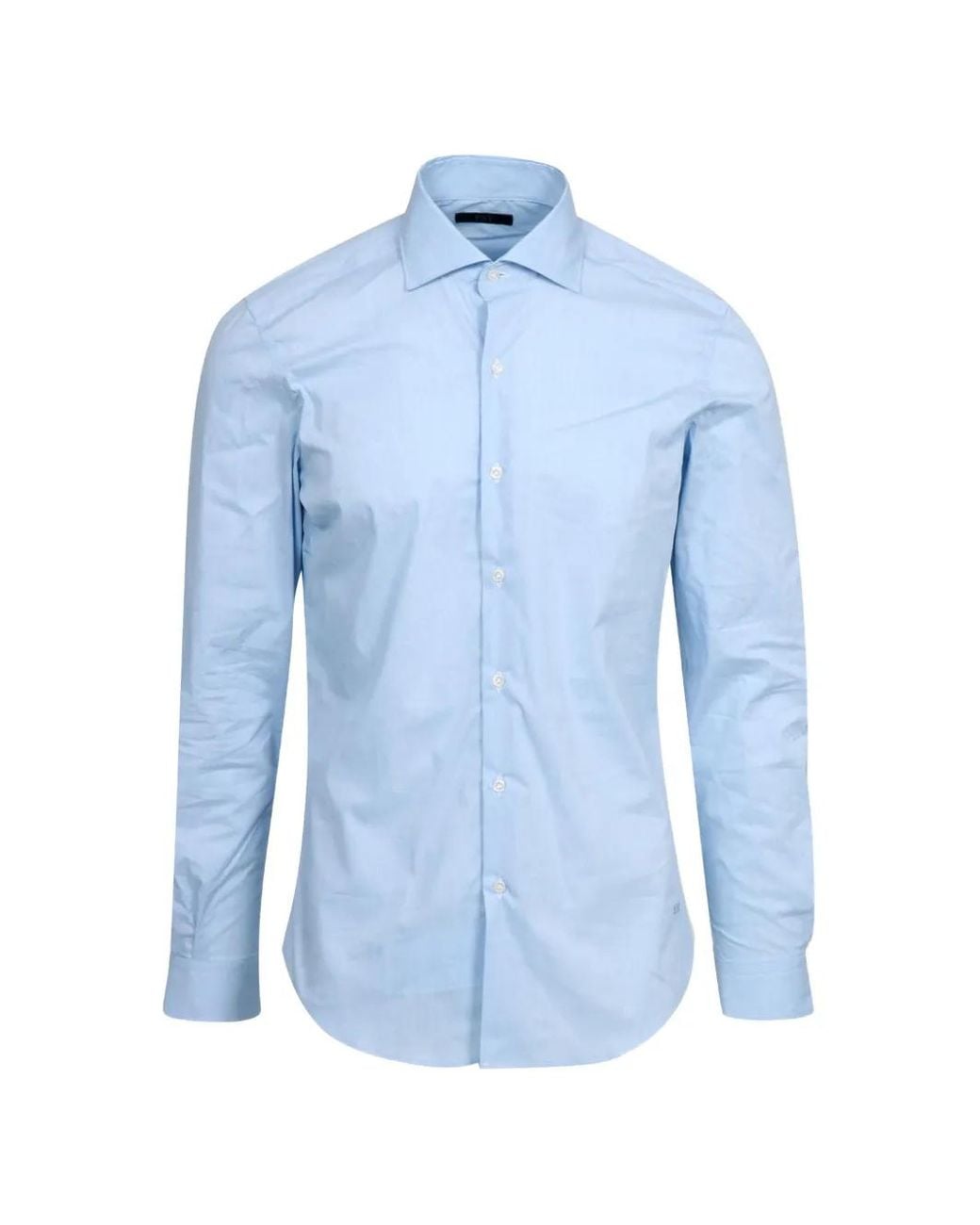 Lichtblauw knoopsluiting lange mouwen afgeronde zoom Size: 40. Gender: Male. Material:Stof. Kleur: blauw