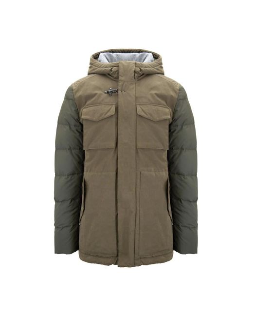 Profiteer van de beste deals! Blijf warm en stijlvol deze winter met de herenjas van Fay. Gemaakt in Italië met hoogwaardige materialen, deze jas heeft een hoge kraag, verstelbare capuchon en meerdere zakken voor gemak. Verkrijgbaar in verschillende maten. Kleur: groen