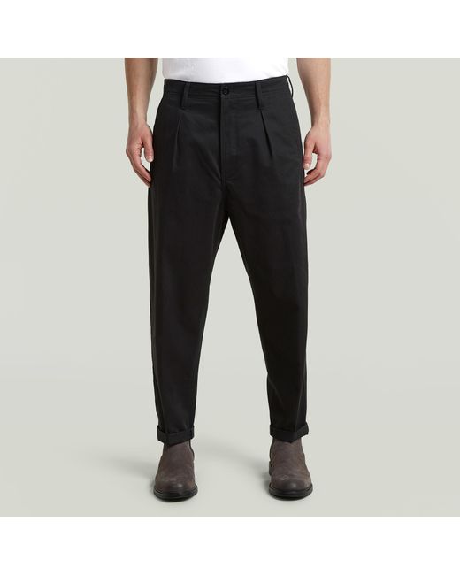 Pleated Relaxed Tapered Chino in het zwart voor heren