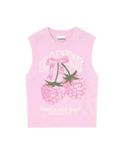 De Ganni Wool Vest is een mouwloos gebreid vest, ontworpen voor veelzijdige layering. Het strakke vest silhouet staat goed over shirts of onder jassen voor extra warmte. Belangrijkste kenmerken: Roze | Wol | Mouwloos | Gebreide constructie | Vest silhouet Kleur: roze