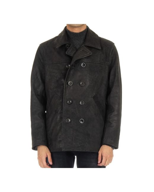 Italiaans Vakmanschap Exclusieve Zwarte Leren Peacoat voor heren