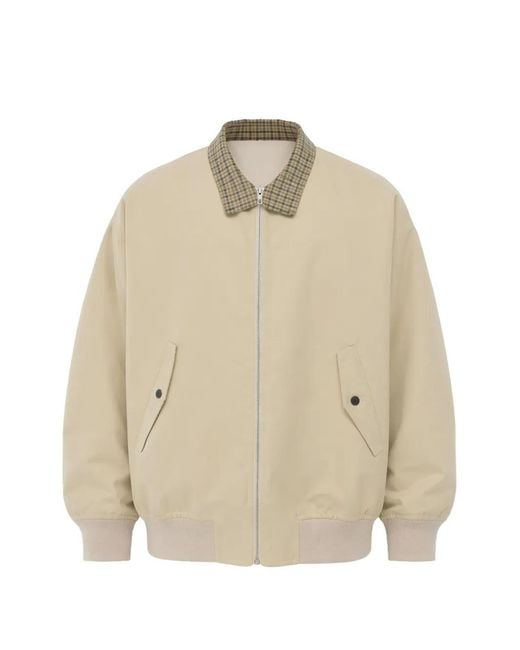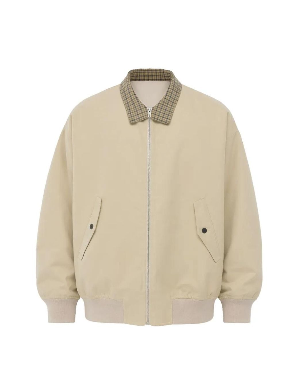 Lichtbeige geruite kraag ritssluiting klepzak met knopen Size: 50. Gender: Male. Material:Stof. Kleur: naturel