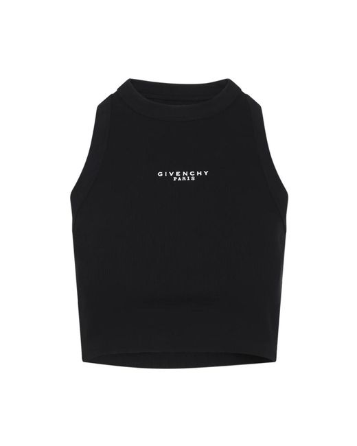 Givenchy Cropped Tank Top in een zachte katoenmix. Ontworpen voor dagelijks gebruik, combineert gemakkelijk met stijlen met hoge taille of als laag onder jassen voor een gepolijste casual look. Belangrijkste kenmerken: Zwart | Katoen | Zacht gevoel | Lichte stretch | Ronde hals | Mouwloos | Givenchy Paris print op de voorkant | Cropped silhouet | Afmetingen en pasvorm: Cropped pasvorm | Samenstelling en verzorging: 98% katoen | 2% elastaan | Machinewas maximaal 30°C op een fijnwasprogramma. Strijk op maximale temperatuur van de zoolplaat (110°C) zonder stoom. Niet in de droogtrommel. Niet bleken. Niet chemisch reinigen.