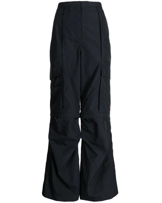 Marineblauw, afneembare vlakken, wijde pijpen, verborgen ritssluiting aan de voorkant, elastische tailleband aan de achterkant, twee steekzijzakken, twee cargo zijzakken en trekkoord zoom. Size: S. Gender: Female. Material:nylon/katoen. Kleur: blauw
