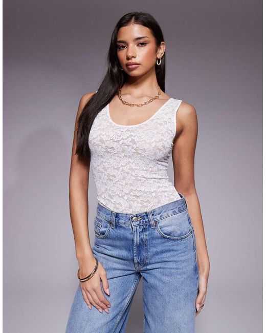 - Kanten Body Met Stretch En Lage Ronde Hals