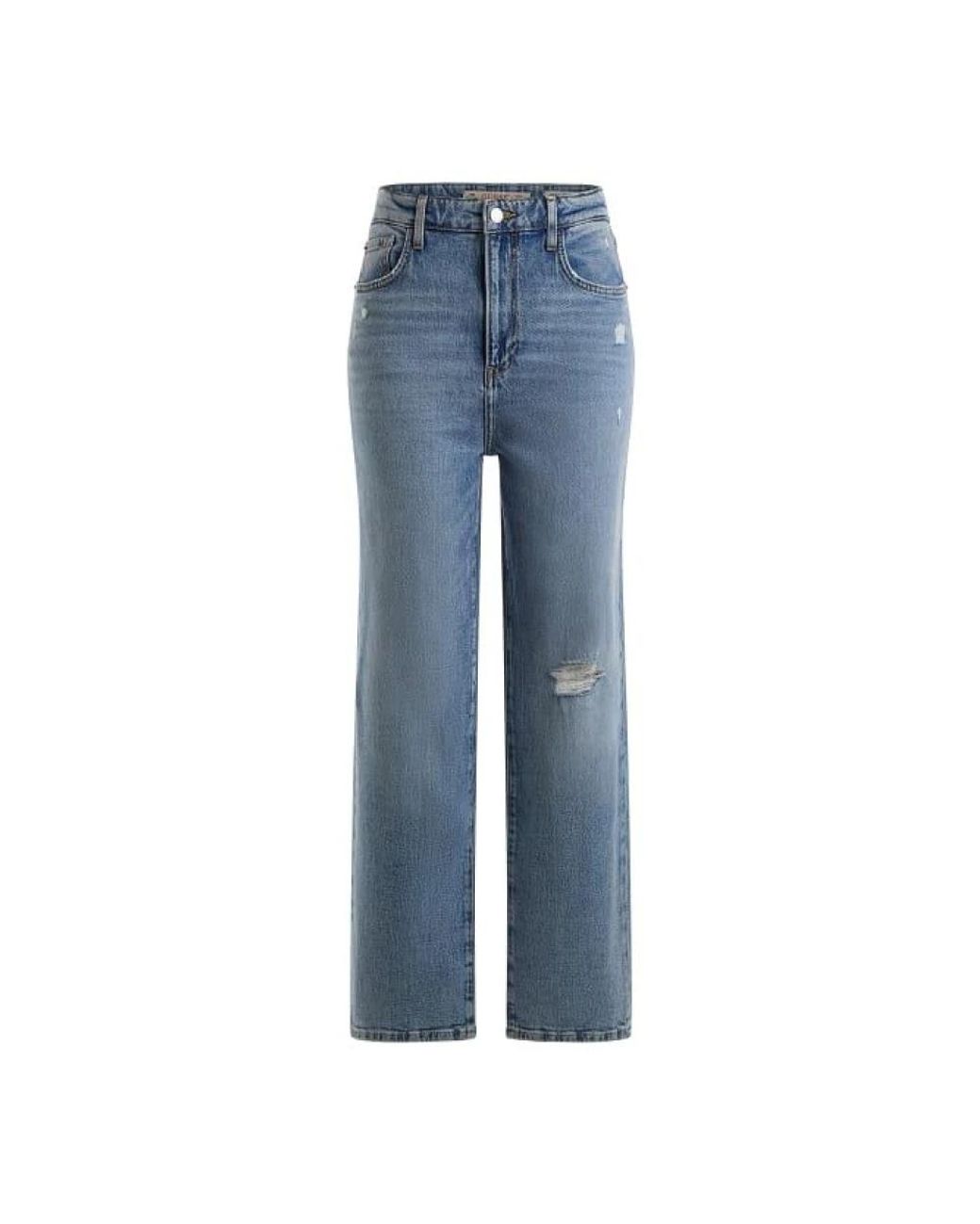De Guess Melrose Jeans hebben een silhouet met een hoge taille en rechte pijpen, met een gewassen, licht versleten afwerking—ontworpen voor dagelijks gebruik en gemakkelijke styling. Belangrijkste kenmerken: Blauw | Denim lichtblauw | Katoen | Lichte stretch | Ritssluiting en knoopsluiting | Vijfzakkenmodel | Hoge taille | Rechte pijp | Gewassen effect | Versleten details | Driehoekige logopatch | Afmetingen & pasvorm: Rechte pijp | Hoge taille | Regular fit | Samenstelling & onderhoud: 94% katoen | 5% polyester | 1% elastaan | Machinewas koud, niet bleken, droogtrommel laag of aan de lijn drogen, strijken op lage temperatuur indien nodig.