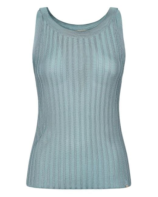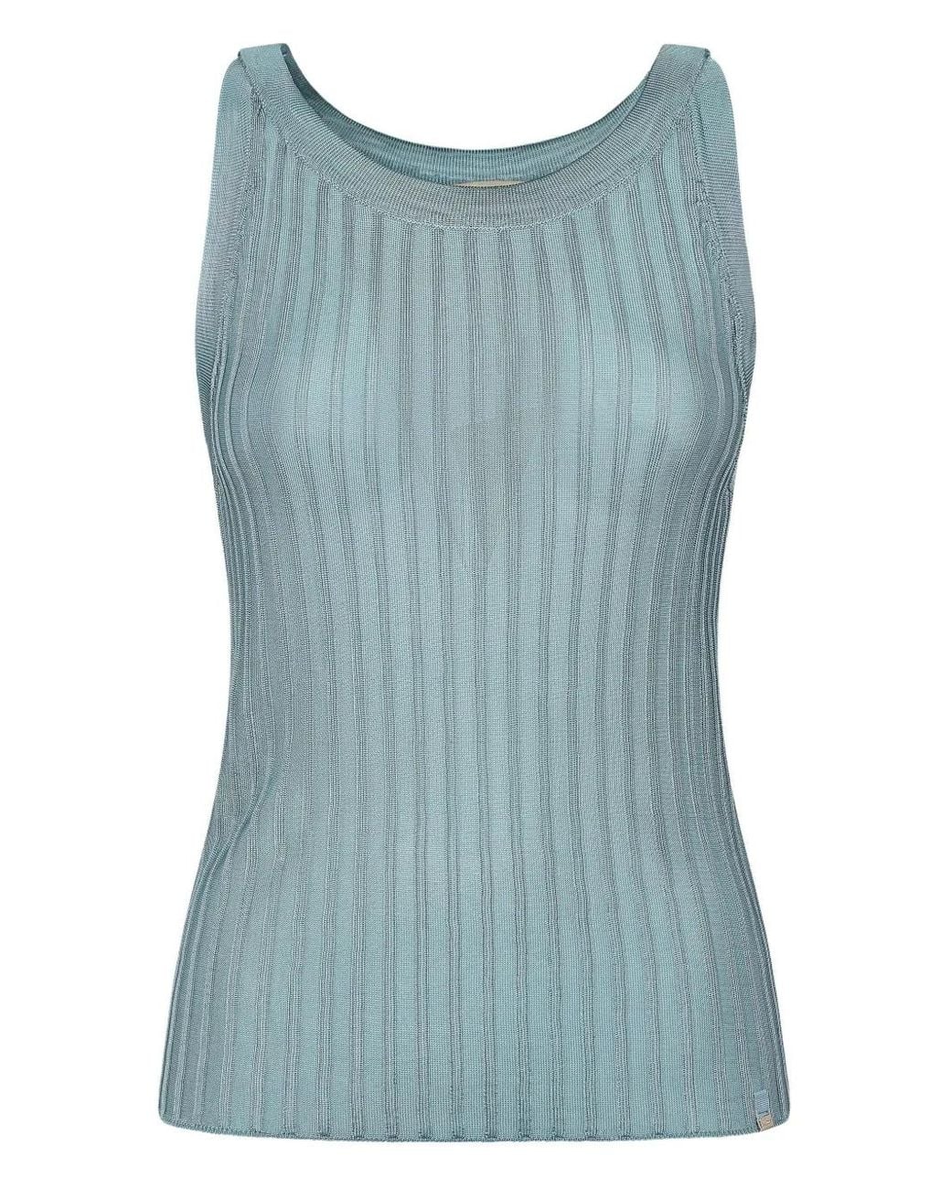 Lichtblauw geribbeld design mouwloos ronde hals Size: 40. Gender: Female. Material:Viscose. Kleur: blauw