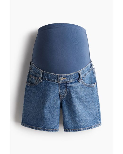 Een 5-pocketshort van katoenen denim met bekleed elastiek aan de zijkanten en een brede boord van tricot voor een optimale pasvorm over de buik. Kleur: blauw