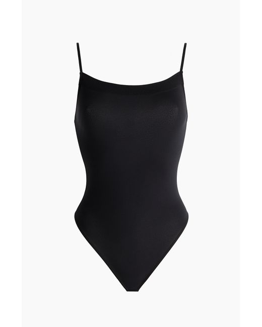 Een stringbody ontworpen met zo min mogelijk naden voor een naadloos, comfortabel gevoel op je huid. Het model heeft verstelbare schouderbandjes, een rechte halslijn met een brede, geribde boord erlangs en een diep, rond rugdecolleté. Gevoerd kruis met een blinde drukknoopsluiting. Kleur: zwart