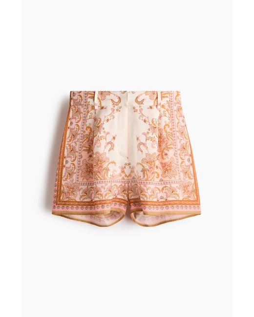 Een short van geweven lyocell met een print. Het model heeft een hoge taille, een gulp met een rits en een blinde haak-en-oogsluiting, bekleed elastiek achter in de taille en plooien aan de voorkant. Kleur: roze
