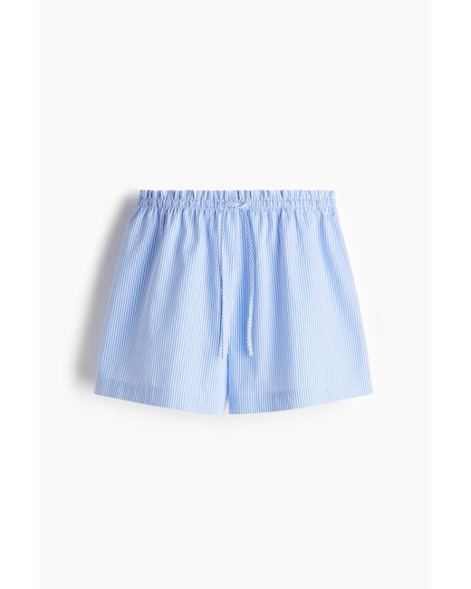 Een short van knisperend katoenen popeline met een ruime pasvorm en een hoge taille met elastiek, een volantrandje en een smalle drawstring. Kleur: blauw