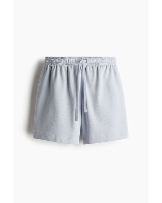 Een short van lichte joggingstof met een ruime pasvorm. Het model heeft elastiek en een drawstring in de taille en discrete steekzakken. Kleur: blauw