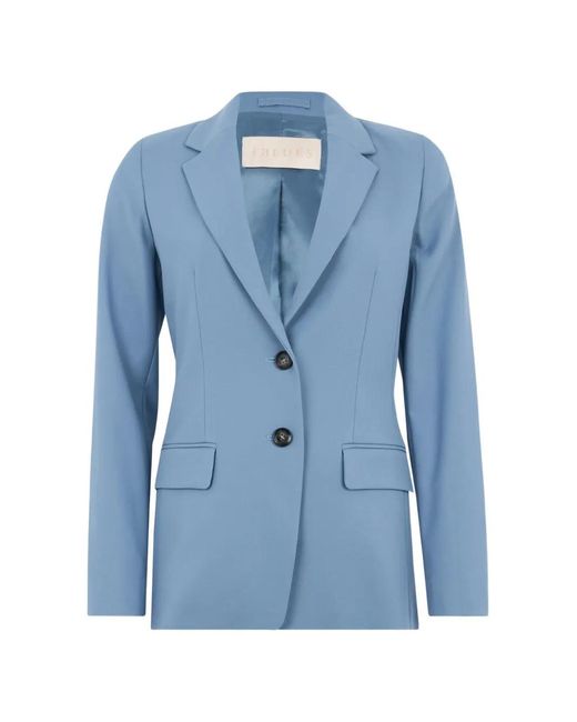 Suikerpapier blauw gekartelde revers knoopsluiting voorklepvakken Size: 40. Gender: Female. Material:Polyester/Viscose/Spandex/Elastane. Kleur: blauw