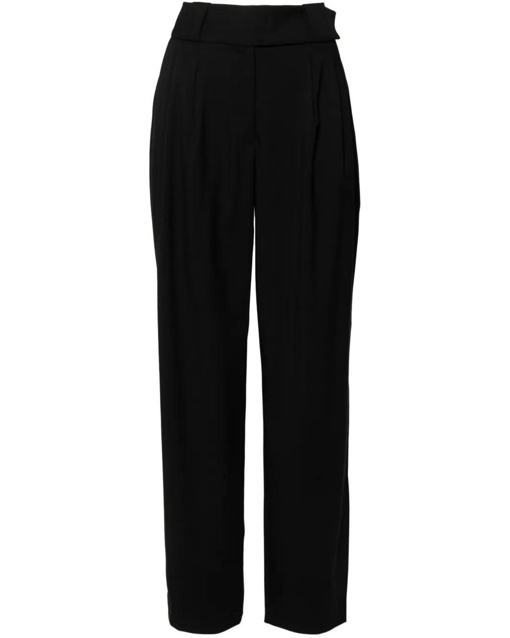 Zwart wolblend getextureerde afwerking geplooide details twee steekzakken aan de zijkant twee paspelzakken aan de achterkant toelopende pijpen verborgen rits-, haak- en knoopsluiting aan de voorkant Size: 34. Gender: Female. Material:Viscose/katoen/wol/Elastane. Kleur: zwart