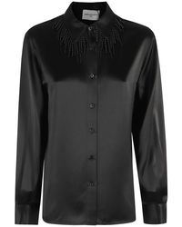 Satijnen Blouse Met Kraag Met Kralen in het zwart voor dames